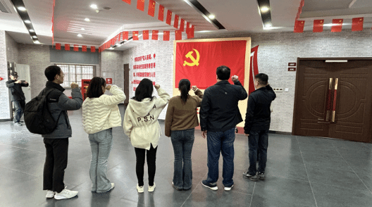 活动期间,全体党员还集体重温了入党誓词。面对鲜红的党旗,同志们庄严举起右手,铿锵有力的誓言回荡在红色旧址之间,进一步坚定了理想信念,强化了党性修养。