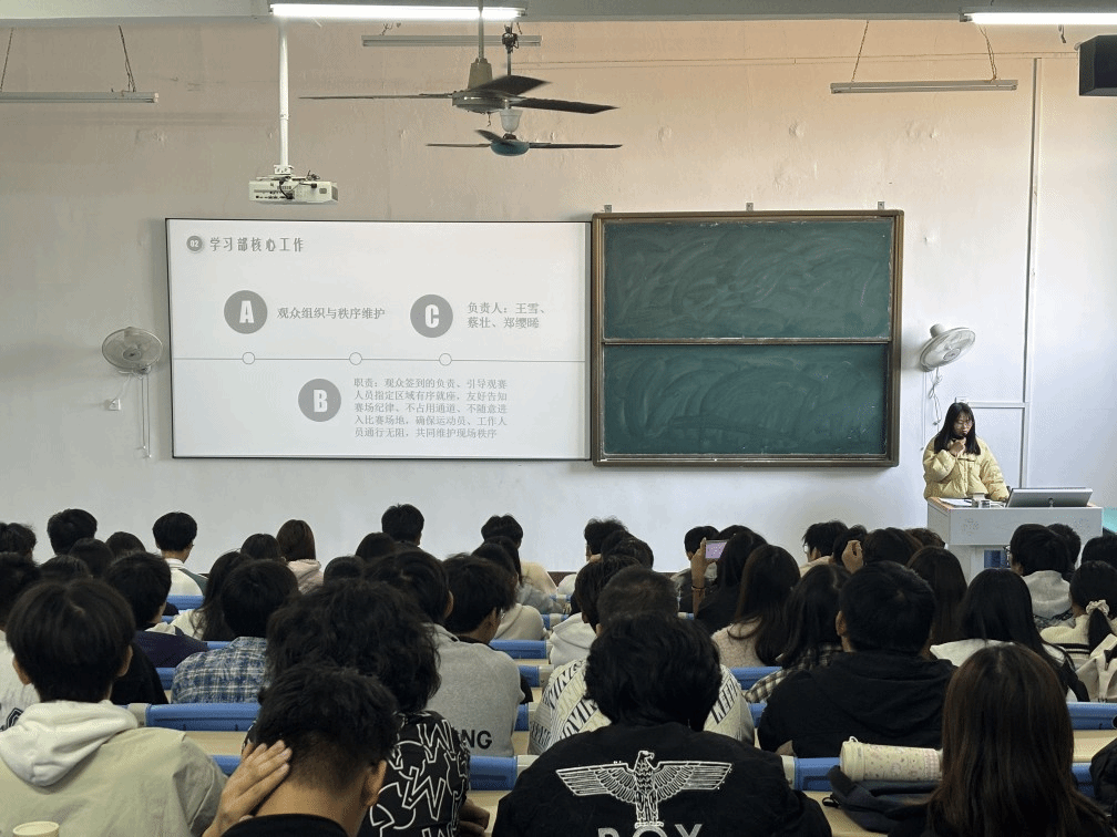 确保全方位服务保障体系高效运转物资与后勤方面,青协部统一调配矿泉水、功能饮料、医疗物资等,确保赛前到位;大本营由多部门联合维护,提供秩序管理与物品看管服务。赛事服务环节,为每位运动员配备专项负责人,实现从检录引导到过程跟拍的全程陪护;体育部组建接送小组分时段值班,确保运动员准时参赛、安全返回。宣传团队由宣传部牵头,联动各班宣传委员,负责加油稿撰写与赛场影像记录,营造热烈氛围。此外,系内还设置机动小组应对突发情况,确保赛事期间响应迅速、处置及时。