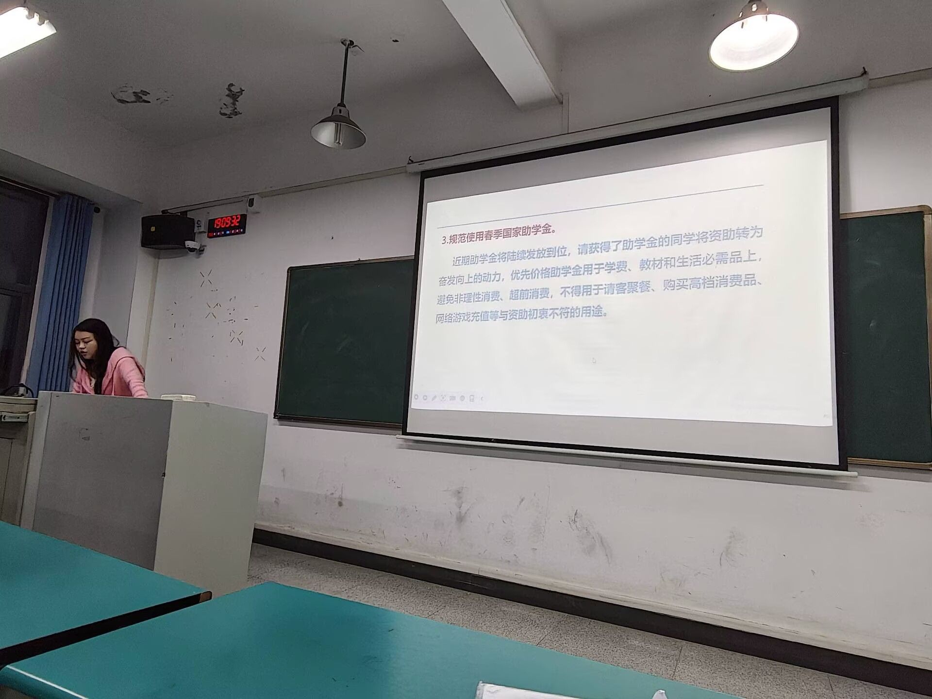 当前春季国家助学金即将陆续发放,各班班主任结合《关于规范使用春季国家助学金的工作提示》开展专题教育,引导学生深刻认识国家助学金是党和国家对青年学生的关心关爱与悉心培养,要求同学们立足学习生活实际需求,将资助资金切实用于保障学习、完成学业、改善生活,坚决杜绝盲目攀比、铺张浪费与非理性消费。