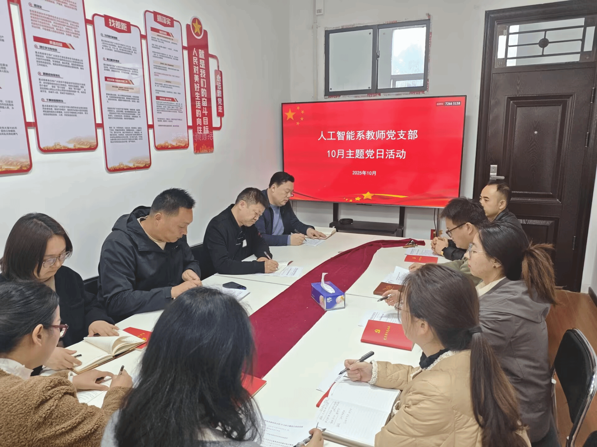 10月28日下午,人工智能系教师党支部在“双带头人”工作室举行了10月份主题党日学习会。会议由崔飞同志主持,全体教师党员参加,共同学习党的理论知识,加强党性修养。