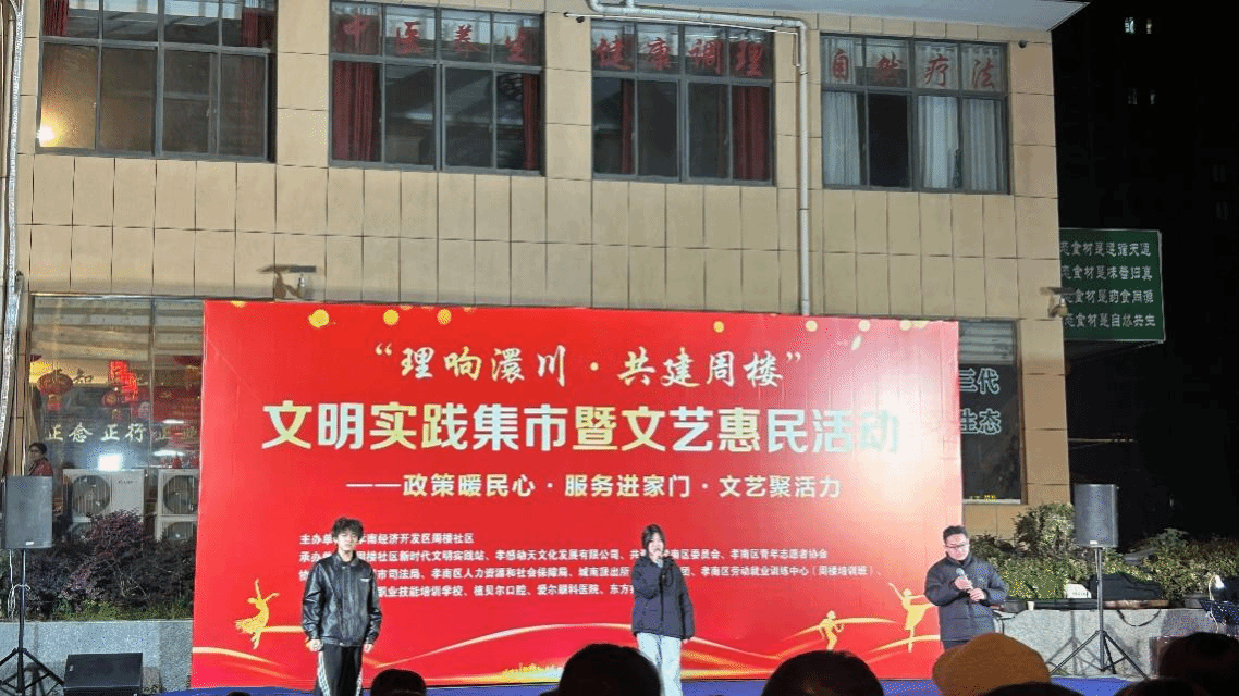 为丰富社区文化生活、践行志愿服务精神,近日,湖北工程学院新技术学院人工智能系青年志愿者服务分队,走进孝南经济开发区周楼社区,参与“理响澴川·共建周楼”文明实践集市暨文艺惠民活动,以青春活力为社区居民带来精彩的文艺表演。