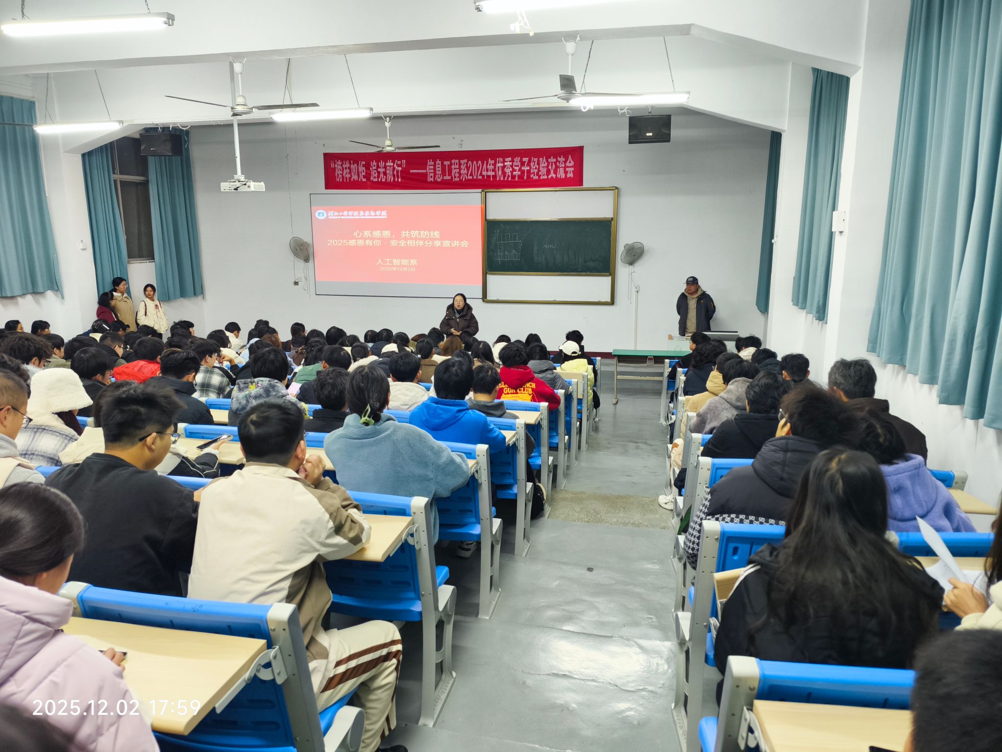 12月2日晚,我系面向各类资助学生,举办“心系感恩,共筑‘防’线:感恩有你·安全相伴宣讲会”,聚焦“感恩资助”与“反电诈”两大核心,引导受助学生守好善意、护好安全。