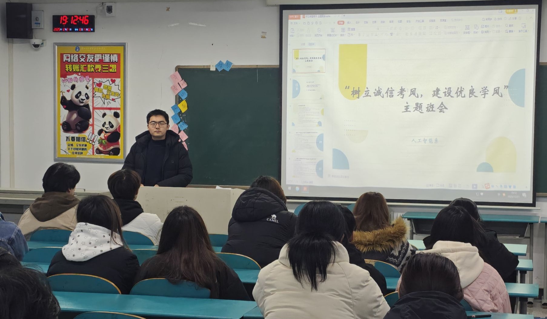 为进一步强化学生诚信考试意识,筑牢优良学风根基,保障期末考试工作平稳有序开展,12月22日,我系各班级于指定点评教室集中开展“树立诚信考风,建设优良学风”主题班会活动。