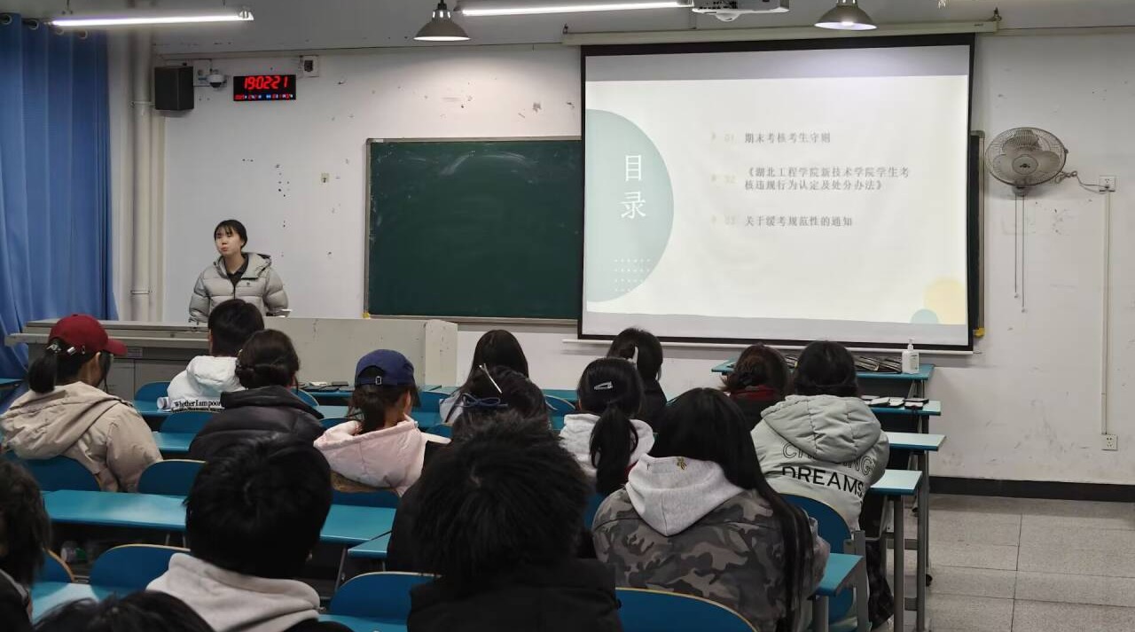 班会期间,各班主任带领学生系统学习《期末考生守则》《湖北工程学院新技术学院学生考核违规行为认定及处分办法》及缓考相关规范性文件,逐条款解读考试纪律要求,明确违规违纪行为的界定标准与严肃后果。同时,结合近年来各类考试违纪作弊典型案例,进行深度剖析与警示教育,引导学生深刻认识作弊行为对个人学业、班级风气及校园秩序的不良影响,教育学生摒弃侥幸心理,自觉遵守考试纪律,以真实学识和诚信态度迎接期末考试。