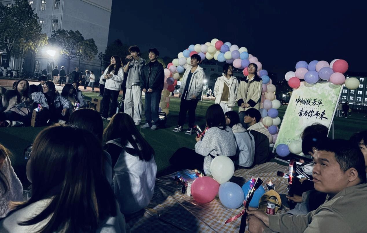 夜幕降临,同大操场灯光璀璨,浪漫气息扑面而来。活动伊始,系学生会为全系女生准备的专属福利——大彩灯玫瑰正式派送,女生们优先领取这份精致惊喜,笑容洋溢在脸庞,节日的暖意瞬间弥漫全场,为后续活动奠定温馨的基调。