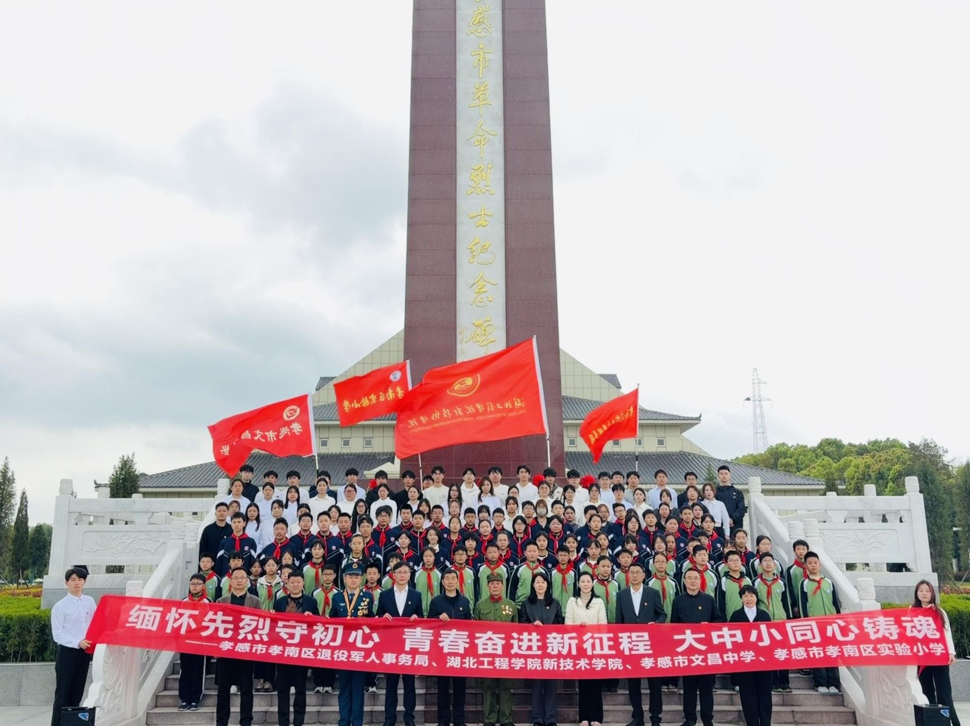 4 月 3 日,湖北工程学院新技术学院人工智能系师生代表赴孝感市革命烈士陵园,参与由孝南区退役军人事务局、学院文法系联合主办的“缅怀先烈守初心,青春奋进新征程” 清明祭扫主题活动,与孝感市多所中小学及学院兄弟院系师生一同,以庄重仪式缅怀革命先烈,传承红色基因,厚植青年学子爱国情怀。