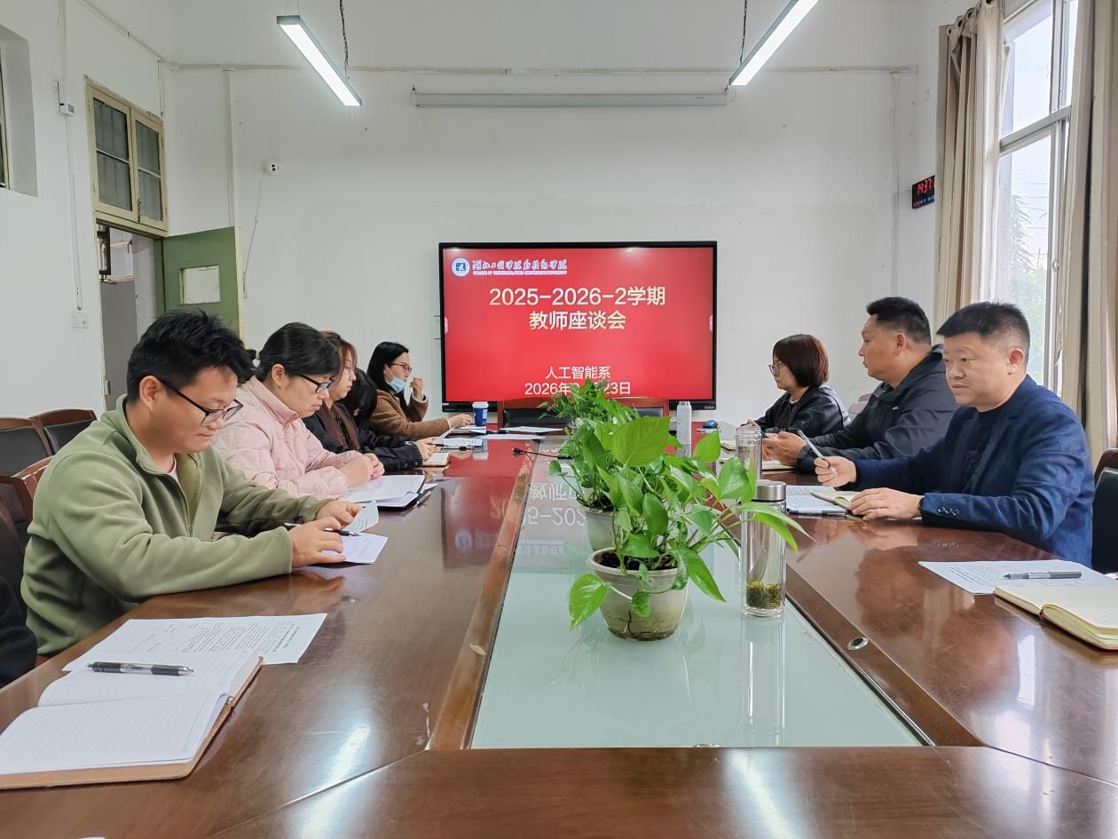 为进一步优化教学过程、强化教学管理、促进教师深度交流与协作,人工智能系于4月23日下午在系会议室召开2025-2026学年第二学期期中教师座谈会。会议由系主任卢军主持,全系任课教师齐聚一堂,围绕教学实践深入交流,共谋育人新路径。