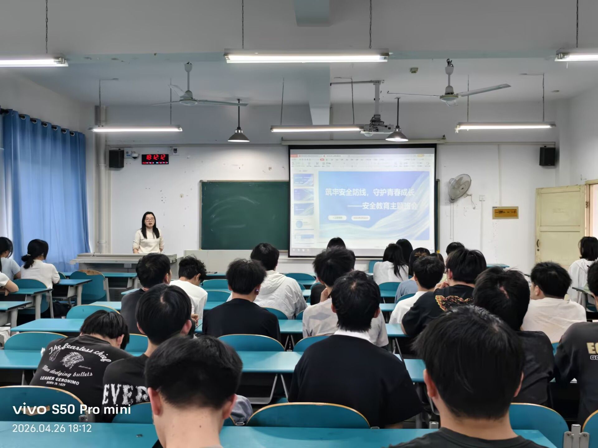 4 月 26 日,结合近期校园安全管理工作要求与实际形势,我系依托周末集中点评时段,组织全系各班有序开展 “筑牢安全防线,守护青春成长” 安全教育主题班会。