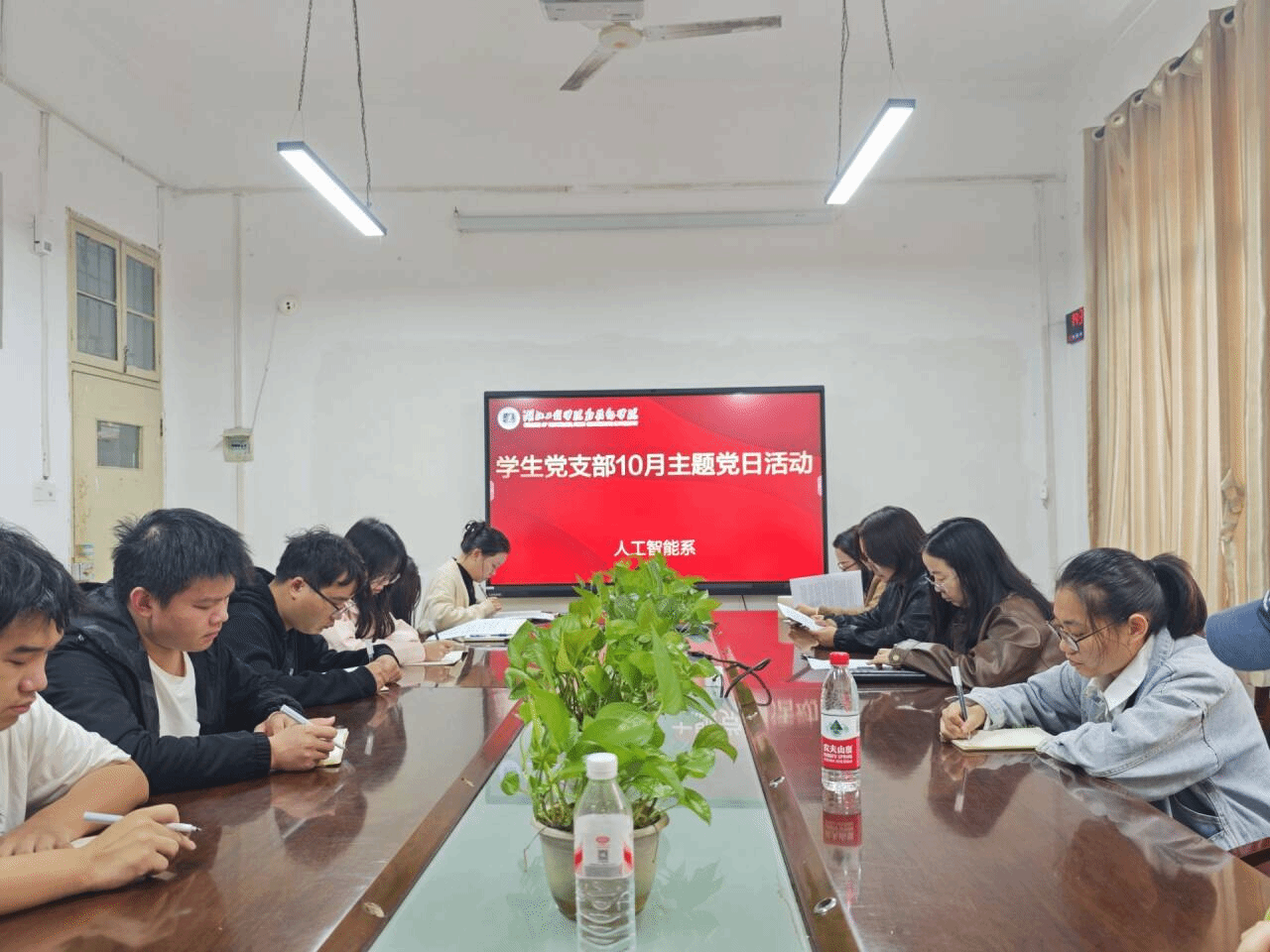 为持续深化理论学习,筑牢思想根基,10月13日下午,人工智能系学生党支部在教学楼4栋304会议室顺利举办了10月份主题党日活动。本次活动聚焦深入学习《习近平谈治国理政》第五卷重要文章精神,在校学生支部全体成员参加,会议由学生一支部书记吴佳慧同志主持。