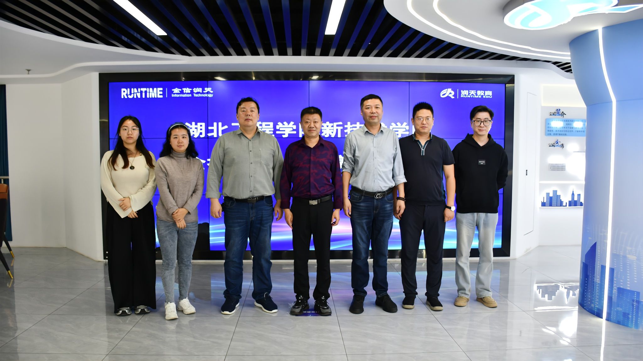 武汉金信润天市场总监沈威、研发总监邓方鸣、教学部总监王宪及市场经理高志超等行业解决方案专家,从“技术落地 + 校企协同育人“角度,为 10 个专业的课程设置与就业渠道拓展提供参考,重点推进新申报专业的就业对接: